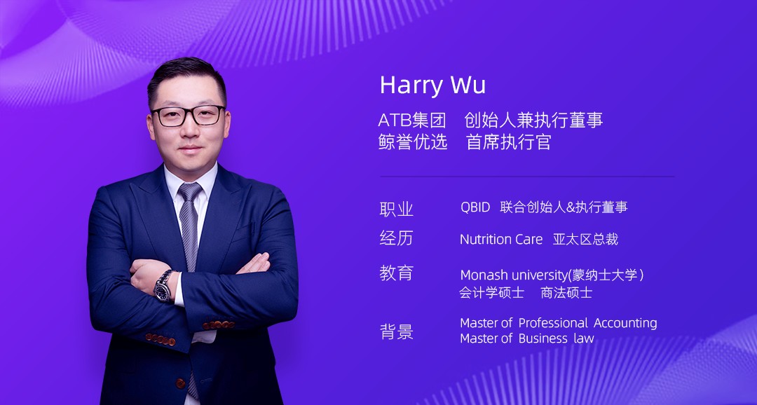 ATB集团创始人兼执行董事Harry Wu,拥有7年的澳洲知名TGA药企专业管理经验,从0到1创办大健康品牌贺柏圣,深度参与京东全球购供应链的搭建。